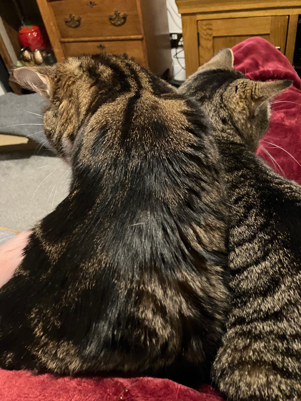 Grabbity and Copurrnicus both wanted to sit on my lap at the same time, and for a brief moment, they did. But the peace did not last.